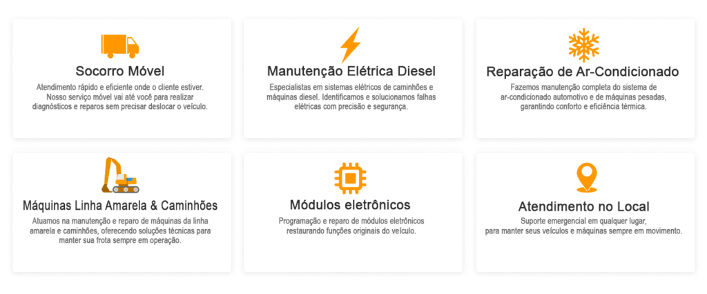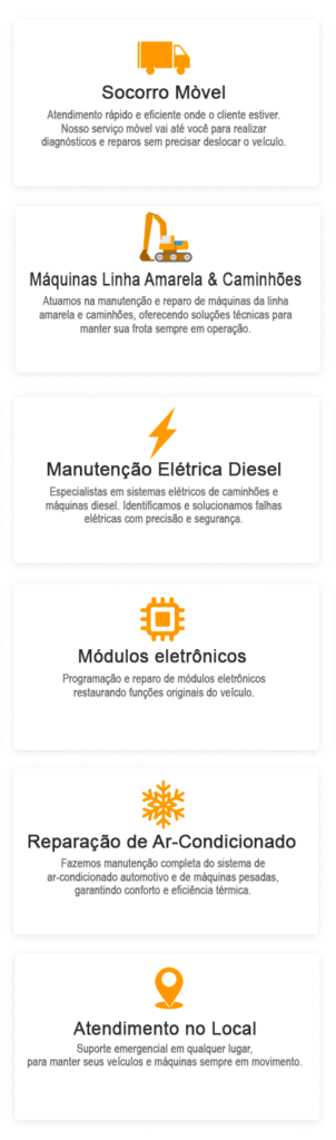 Há mais de 30 anos no mercado, somos referência em manutenção de veículos pesados, atendendo caminhões, ônibus e máquinas agrícolas de terraplanagem com qualidade e agilidade.